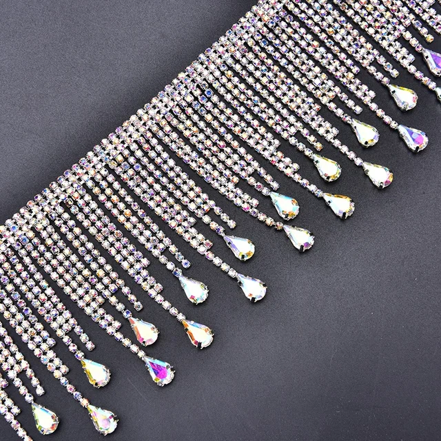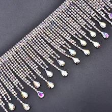 Glitter Clear Glass Rhinestone Trim Tassel Fringe Metal Strass Chain Ribbon Crystal Applique Banding for Crafts
